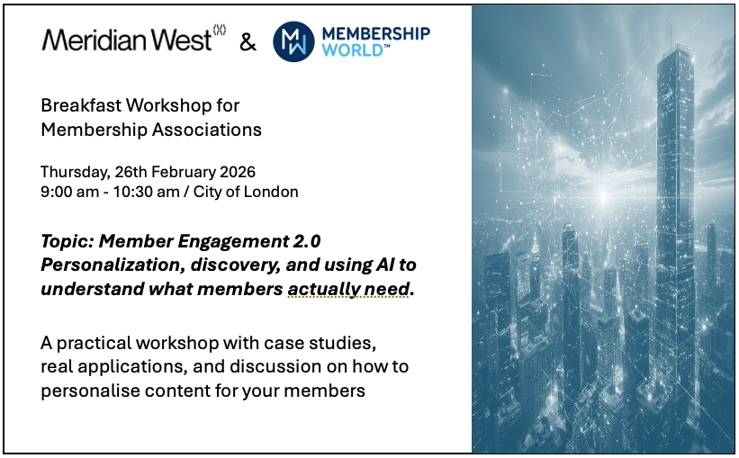 Meridian West has teamed up with Membership World to run a couple of breakfast roundtables on the topic of AI usage in membership organisations.